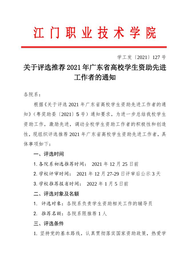 关于评选推荐2021年广东省高校学生资助先进工作者的通知.docx