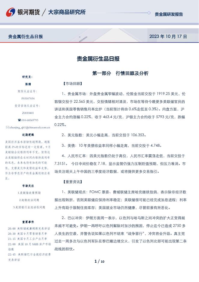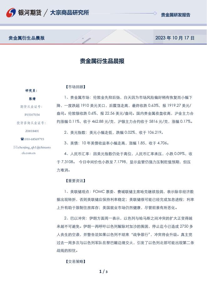 贵金属晨报-20231017 - [品种]期货走势_[品种]期货行情_[品种]期货交易价格|平台_银河期货.pdf