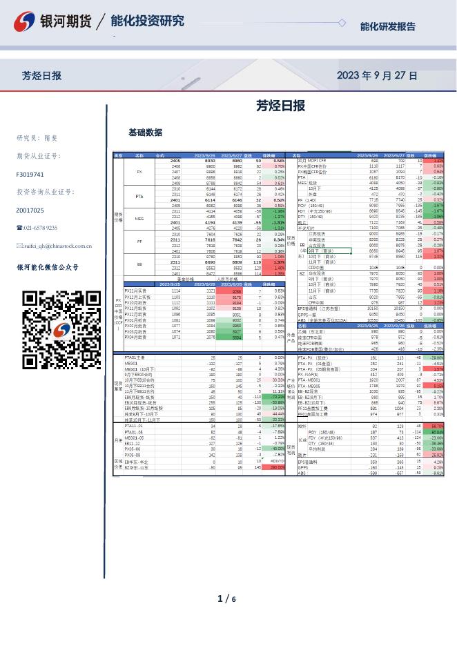 【银河期货】芳烃日报230927 - [品种]期货走势_[品种]期货行情_[品种]期货交易价格[报告页码]银河期货开户交易.pdf