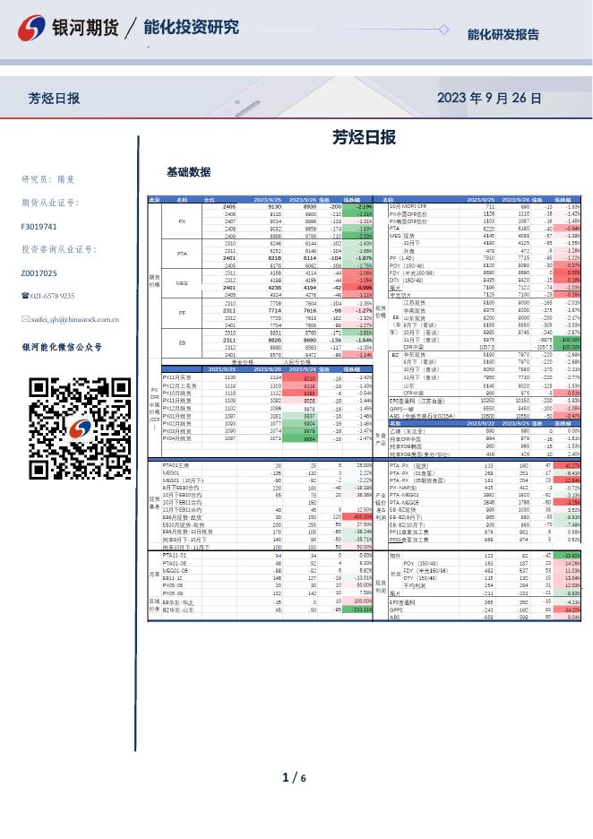 【银河期货】芳烃日报230926 - [品种]期货走势_[品种]期货行情_[品种]期货交易价格[报告页码]银河期货开户交易.pdf