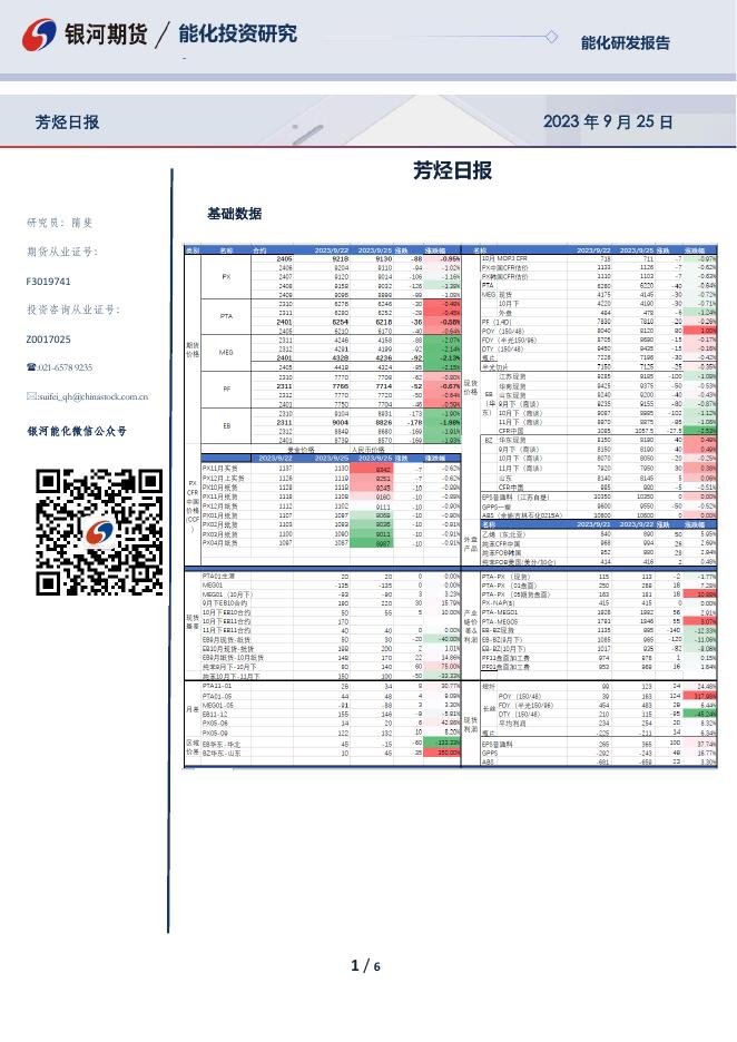 【银河期货】芳烃日报230925 - [品种]期货走势_[品种]期货行情_[品种]期货交易价格[报告页码]银河期货开户交易.pdf