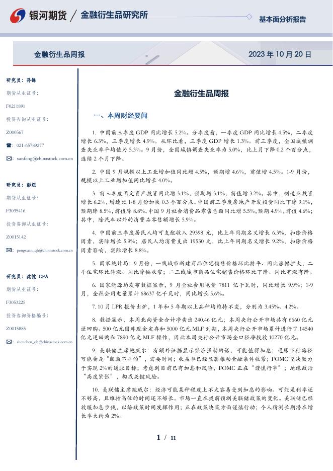 【银河期货】金融衍生品周报231020 - [品种]期货走势_[品种]期货行情_[品种]期货交易价格[报告页码]银河期货开户交易.pdf