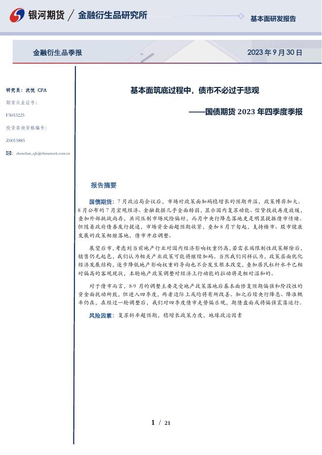 【银河期货】国债期货2023年四季度季报 - [品种]期货走势_[品种]期货行情_[品种]期货交易价格[报告页码]银河期货开户交易.pdf