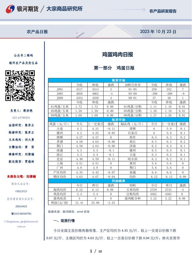 鸡蛋鸡肉日报-20231023 - [品种]期货走势_[品种]期货行情_[品种]期货交易价格[报告页码]银河期货开户交易.pdf