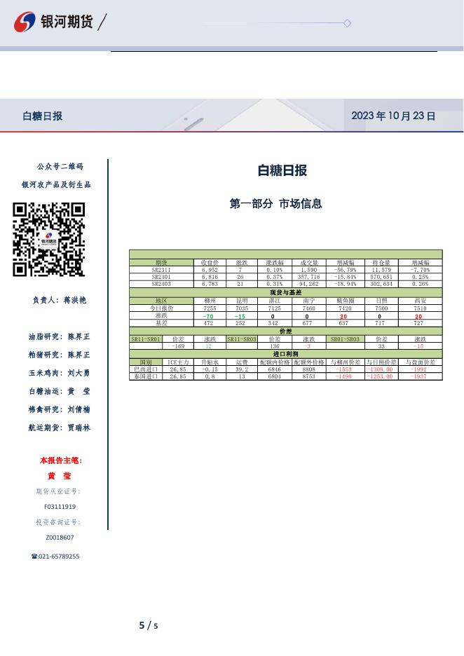白糖日报-20231023 - [品种]期货走势_[品种]期货行情_[品种]期货交易价格[报告页码]银河期货开户交易.pdf