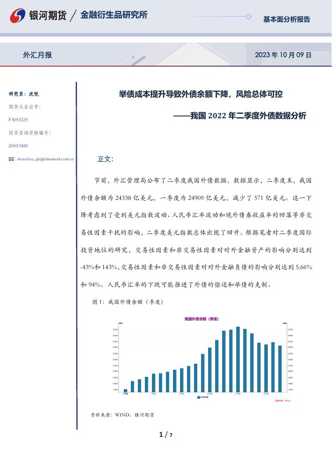 【银河期货】我国2022年二季度外债数据分析 - [品种]期货走势_[品种]期货行情_[品种]期货交易价格[报告页码]银河期货开户交易.pdf