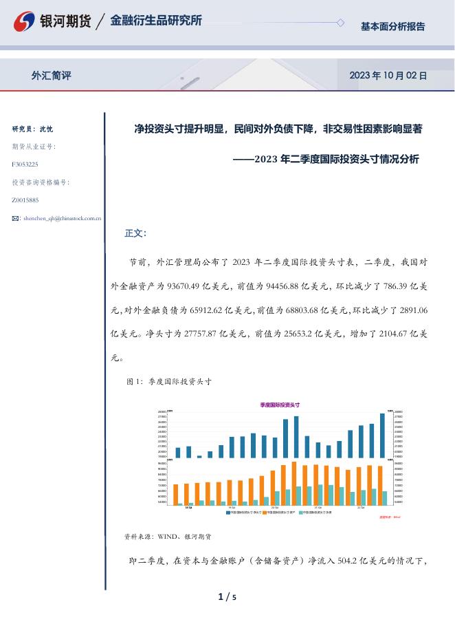 【银河期货】二季度国际投资头寸情况分析 - [品种]期货走势_[品种]期货行情_[品种]期货交易价格[报告页码]银河期货开户交易.pdf