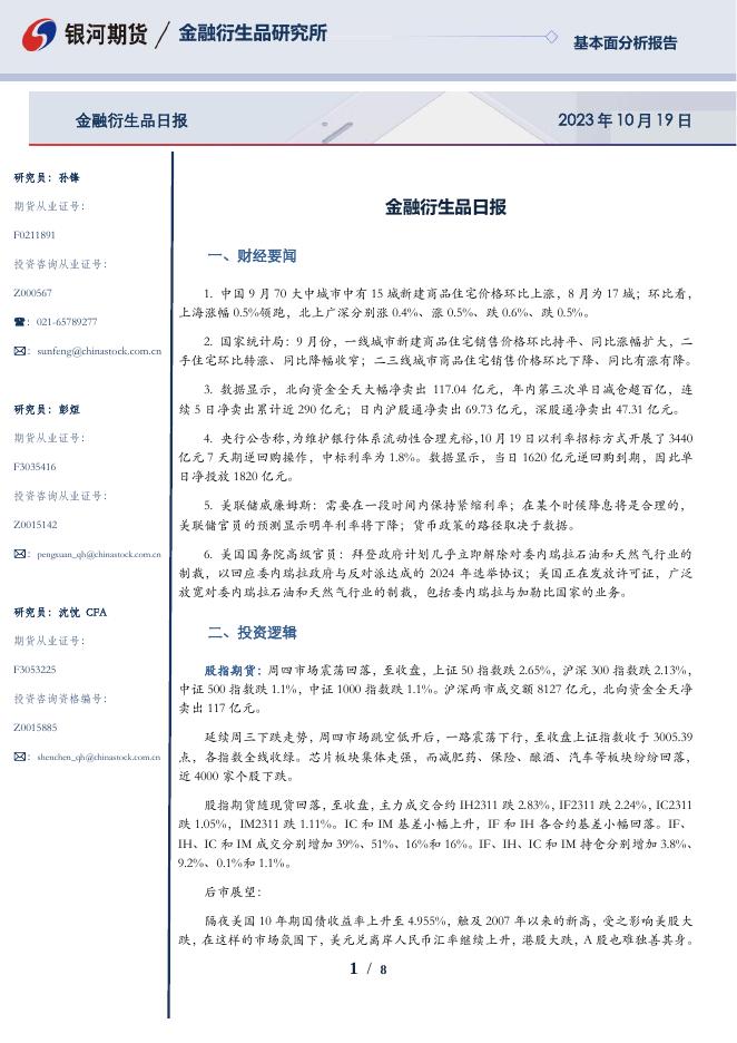 【银河期货】金融衍生品日报231019 - [品种]期货走势_[品种]期货行情_[品种]期货交易价格[报告页码]银河期货开户交易.pdf