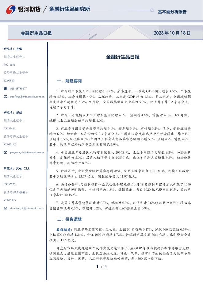 【银河期货】金融衍生品日报231018 - [品种]期货走势_[品种]期货行情_[品种]期货交易价格[报告页码]银河期货开户交易.pdf