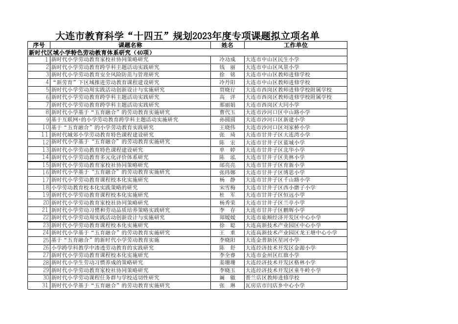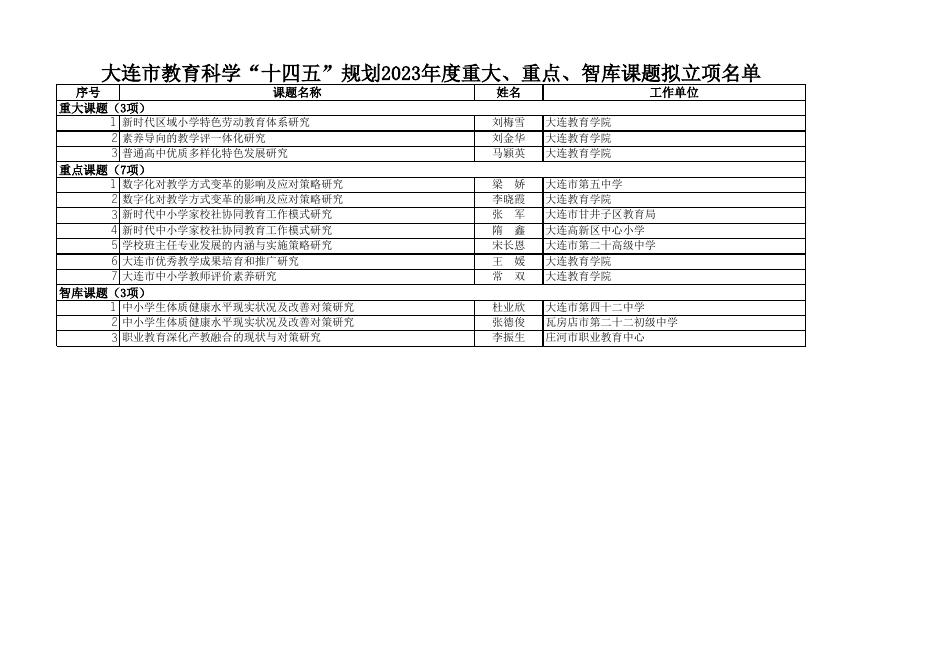 大连市教育科学“十四五”规划2023年度重大、重点、智库课题拟立项名单.xlsx