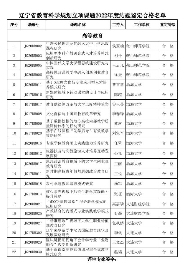 辽宁省教育科学规划立项课题2022年度结题鉴定合格名单.xls