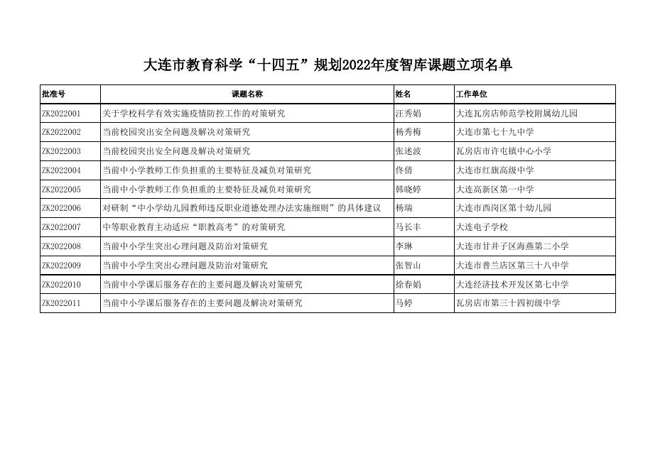 大连市教育科学“十四五”规划2022年度智库课题立项名单.xls