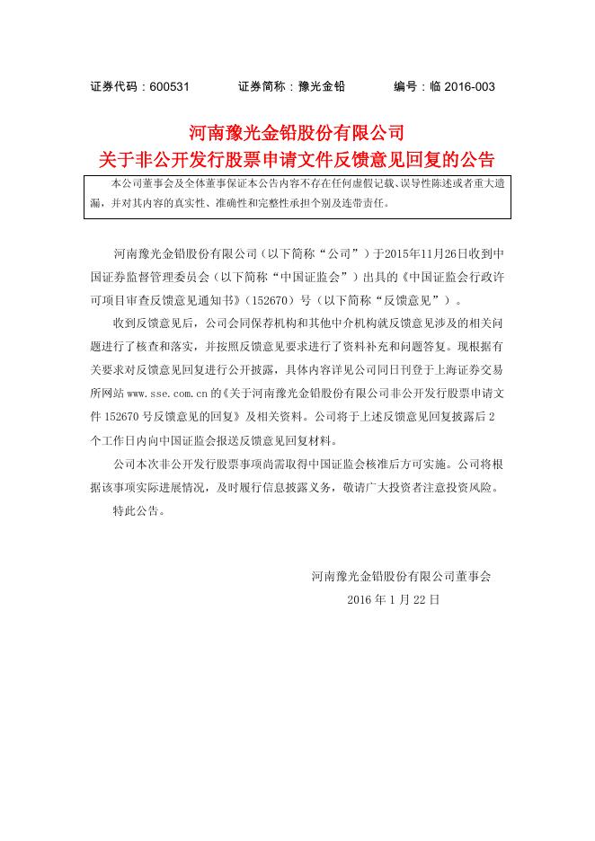 豫光金铅关于非公开发行股票申请文件反馈意见回复的公告 27 09,2017.pdf