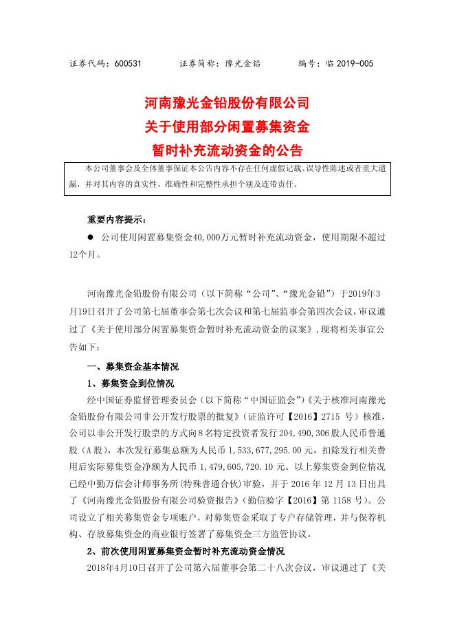 关于使用部分闲置募集资金暂时补充流动资金的公告 20 03,2019.pdf