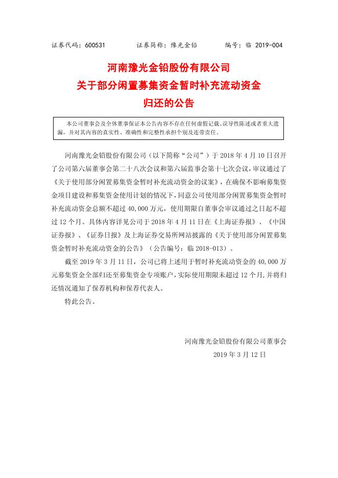 关于部分闲置募集资金暂时补充流动资金归还的公告 12 03,2019.pdf
