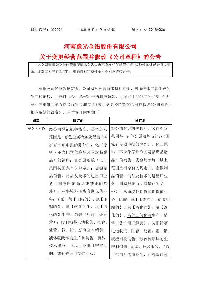 关于变更经营范围并修改《公司章程》的公告 19 09,2018.pdf