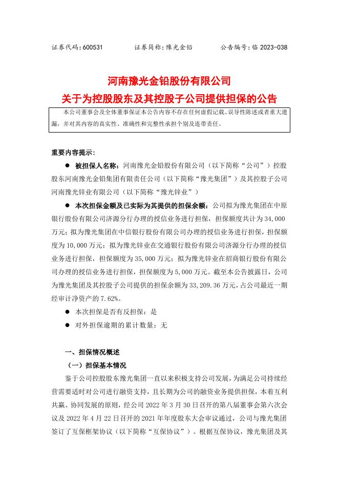 豫光金铅股份有限公司关于为控股股东提供担保的公告 04 08,2023.pdf