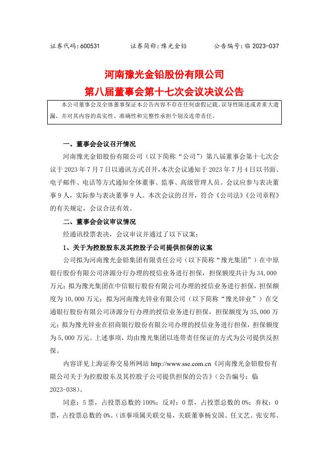 河南豫光金铅股份有限公司第八届董事会第十七次会议决议公告 04 08,2023.pdf