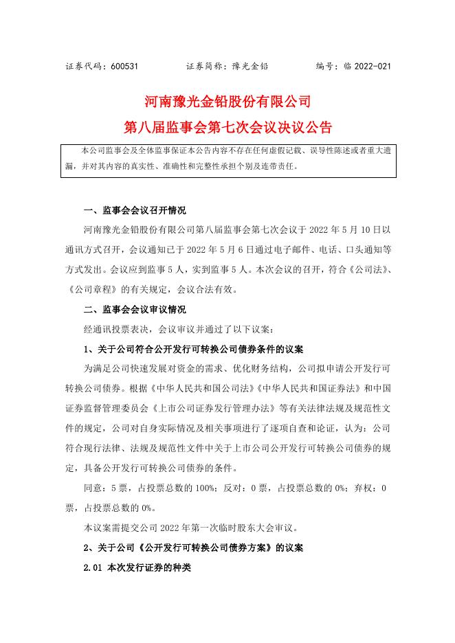 河南豫光金铅股份有限公司第八届监事会第 七 次会议决议公告 19 05,2022.pdf