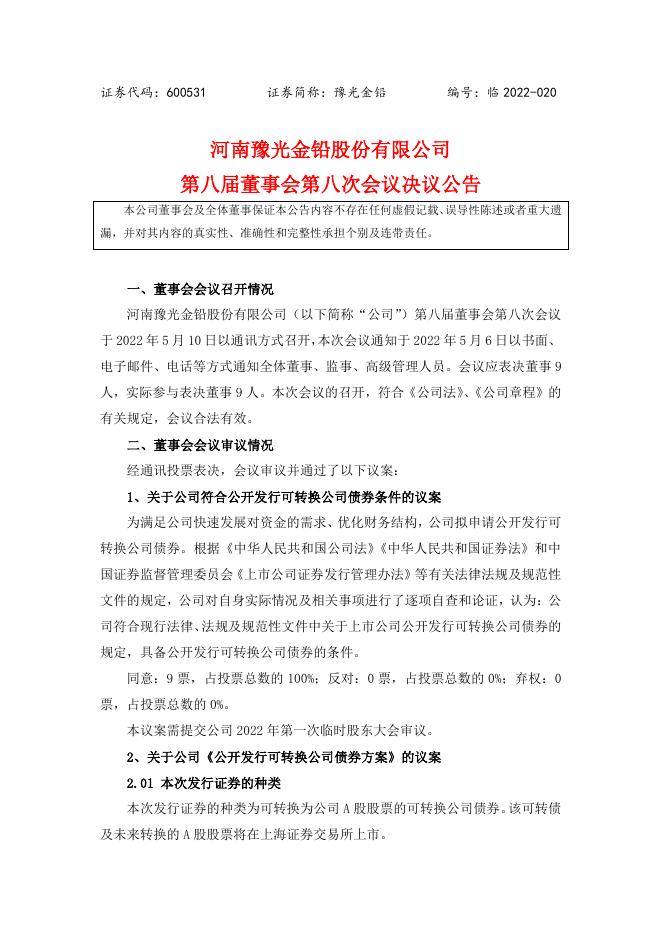 河南豫光金铅股份有限公司第八届董事会第八次会议决议公告 19 05,2022.pdf
