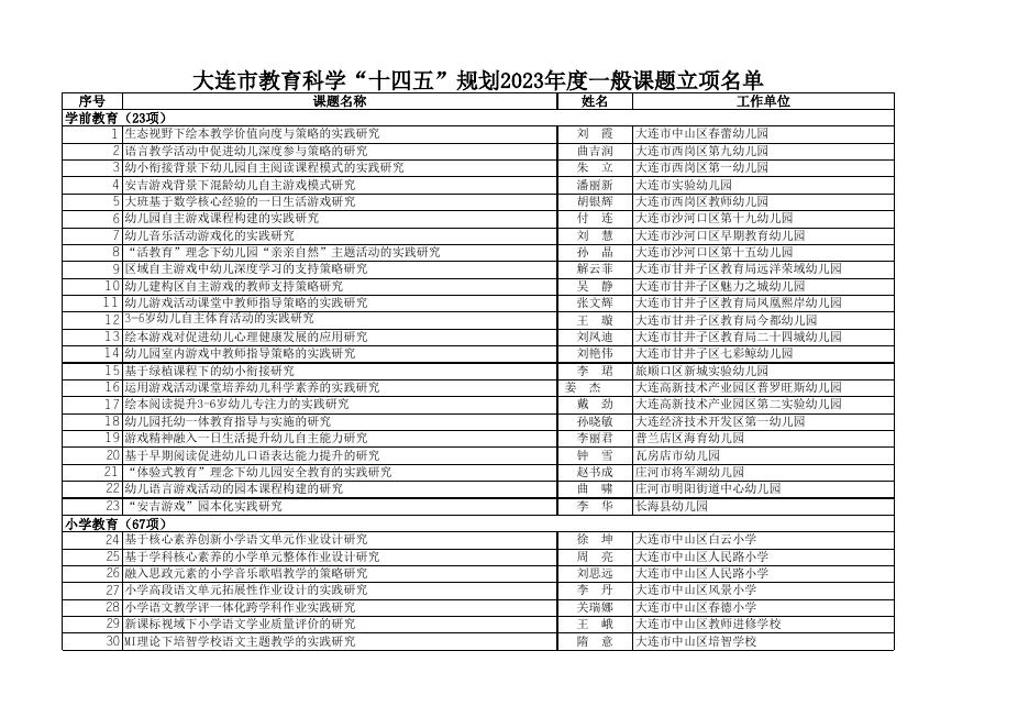 大连市教育科学“十四五”规划2023年度一般课题拟立项名单.xlsx