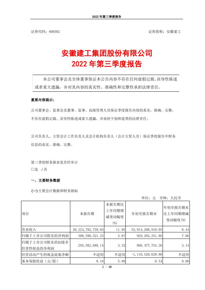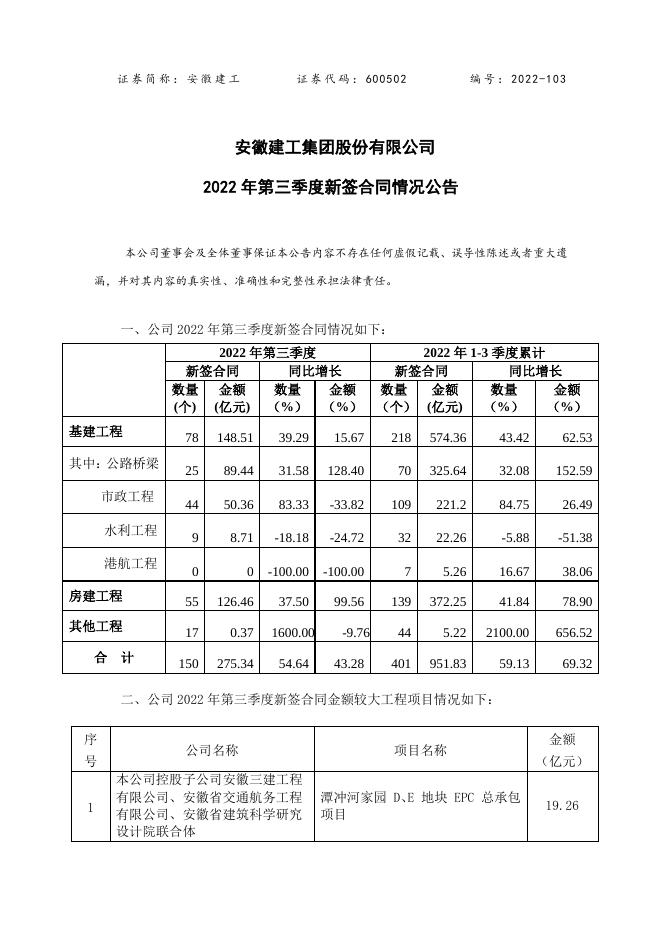 安徽建工2022年第三季度新签合同情况公告.pdf