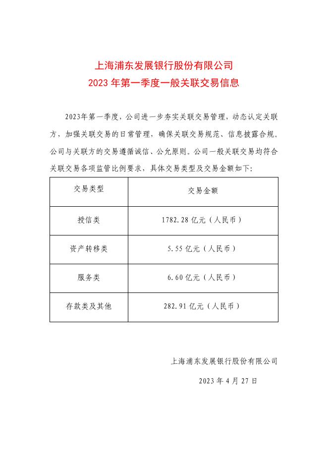 上海浦东发展银行2023年第一季度一般关联交易信息.pdf
