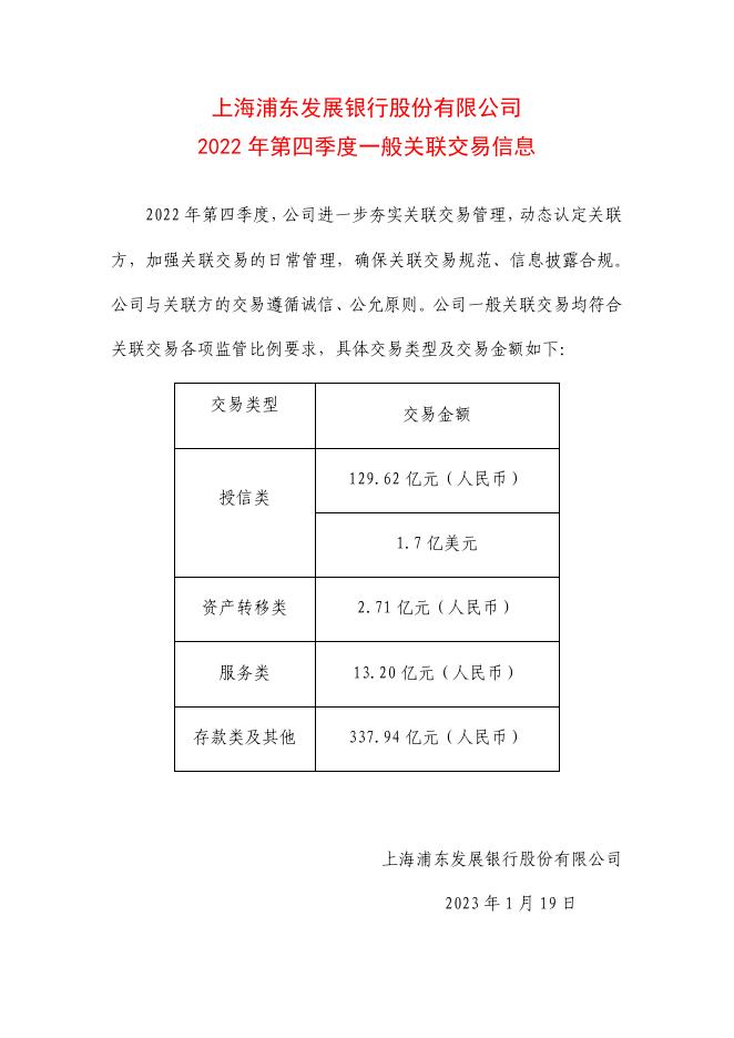上海浦东发展银行2022年第四季度一般关联交易信息.pdf