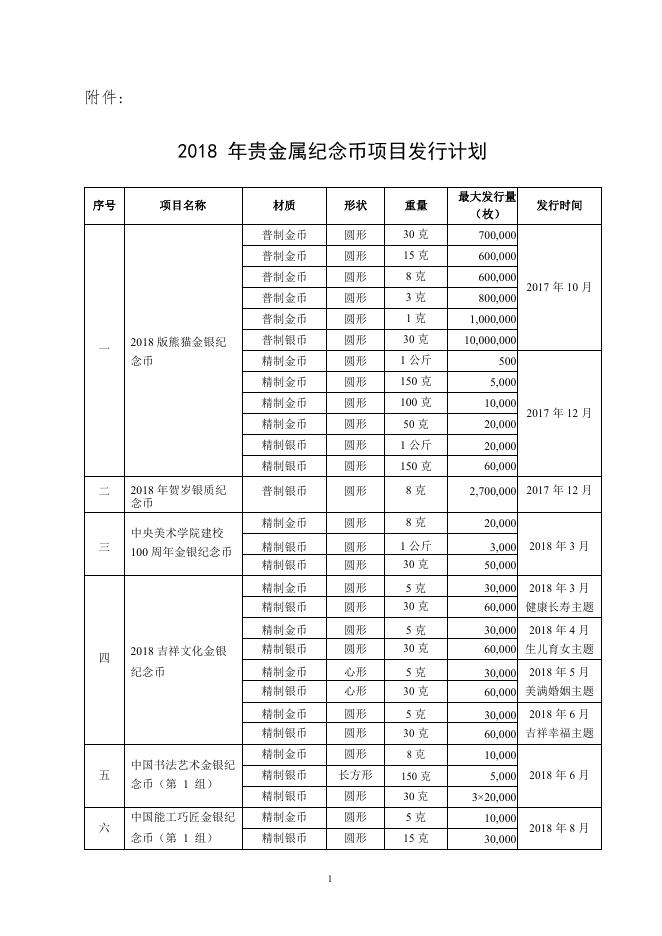 附件:2018年贵金属纪念币项目发行计划.pdf
