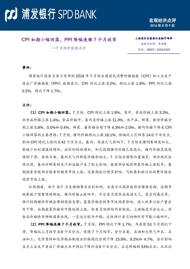 CPI如期小幅回落,PPI降幅连续7个月收窄--7月物价数据点评.pdf