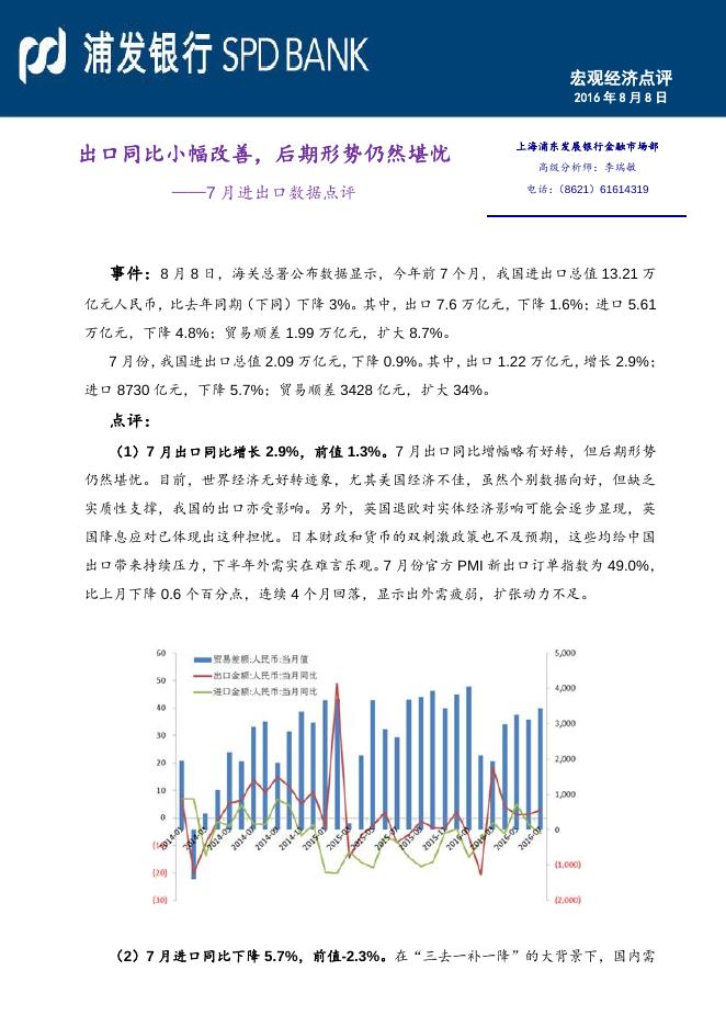 出口同比小幅改善,后期形势仍然堪忧--7月进出口数据点评.pdf