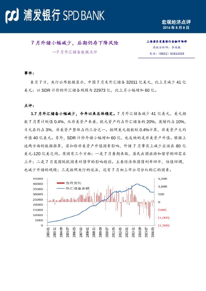7月外储小幅减少,后期仍存下降风险--7月外汇储备数据点评.pdf