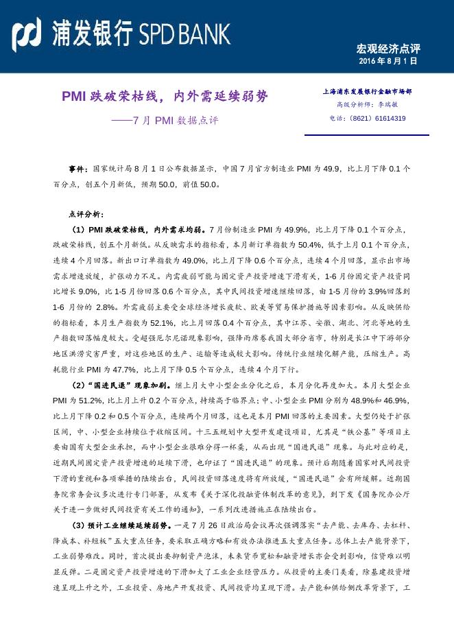 PMI跌破荣枯线,内外需延续弱势--7月PMI数据点评.pdf