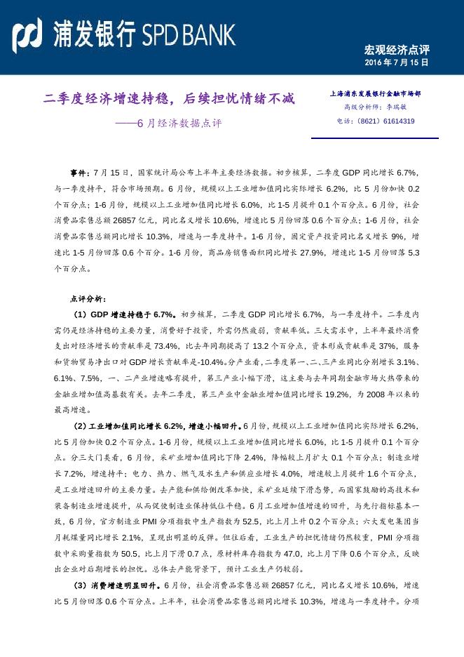二季度经济增速持稳,后续担忧情绪不减--6月经济数据点评.pdf