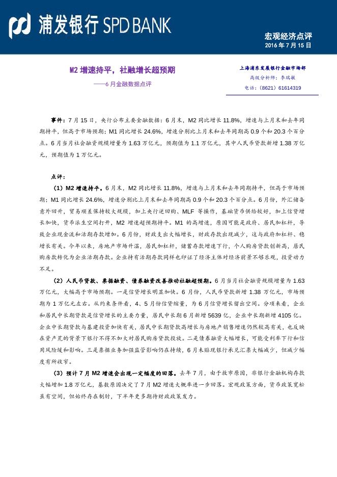M2增速持平,社融增长超预期--6月金融数据点评.pdf