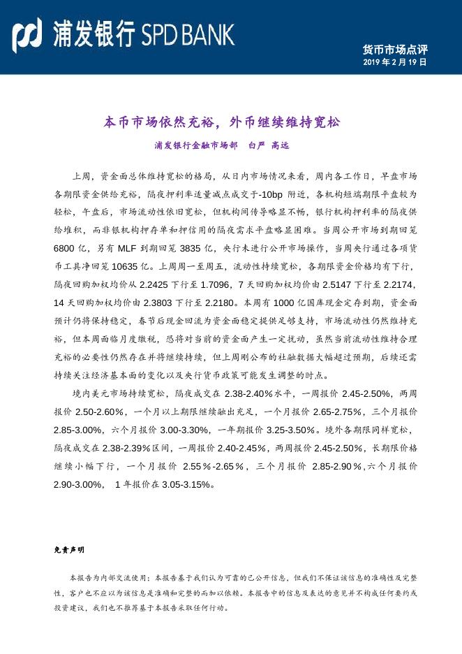 本币市场依然充裕,外币继续维持宽松(20190219).pdf