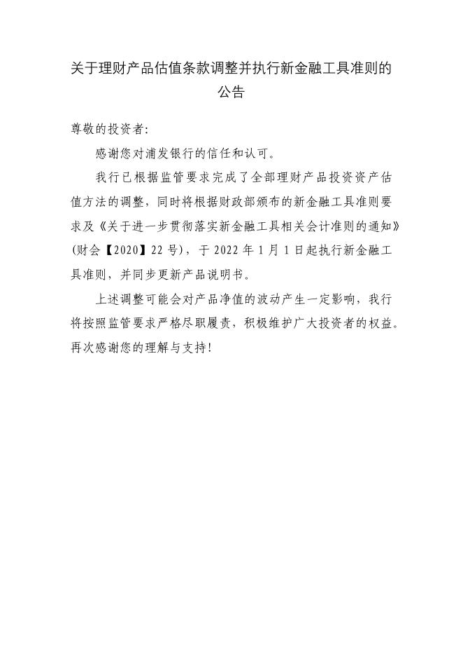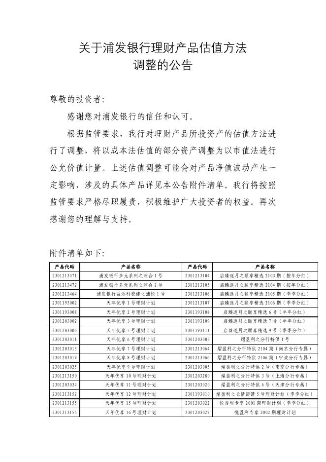 关于浦发银行理财产品估值方法调整的公告.pdf