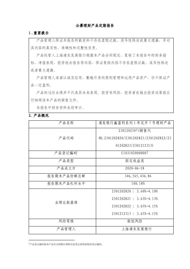 2301202507-鑫盈利系列1年定开7号理财产品-2021三季度理财产品定期报告(公募).pdf