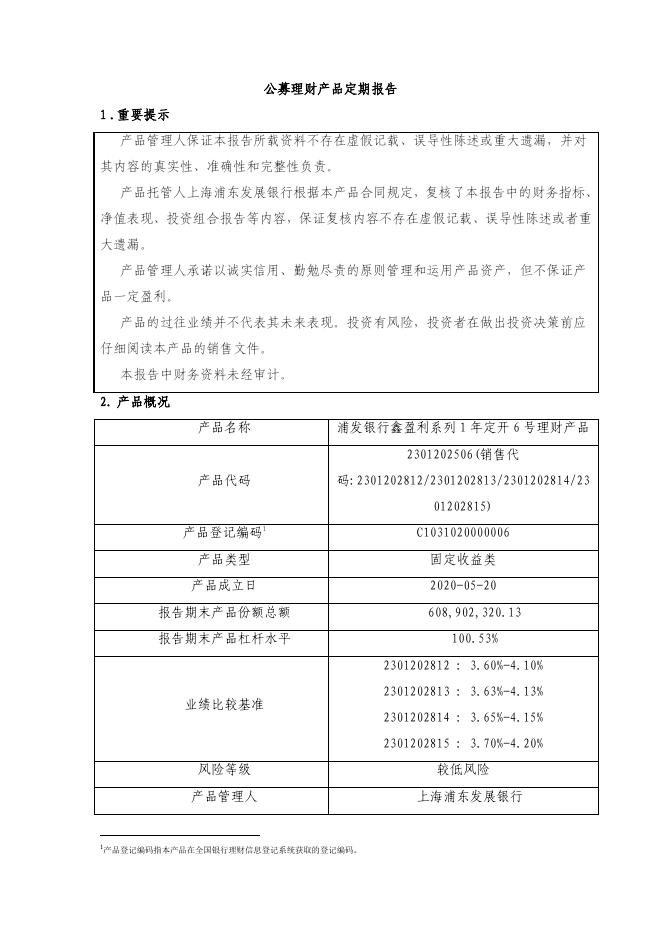 2301202506-鑫盈利系列1年定开6号理财产品-2021三季度理财产品定期报告(公募).pdf