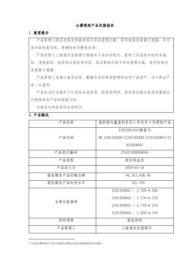 2301202504-鑫盈利系列1年定开4号理财产品-2021三季度理财产品定期报告(公募).pdf