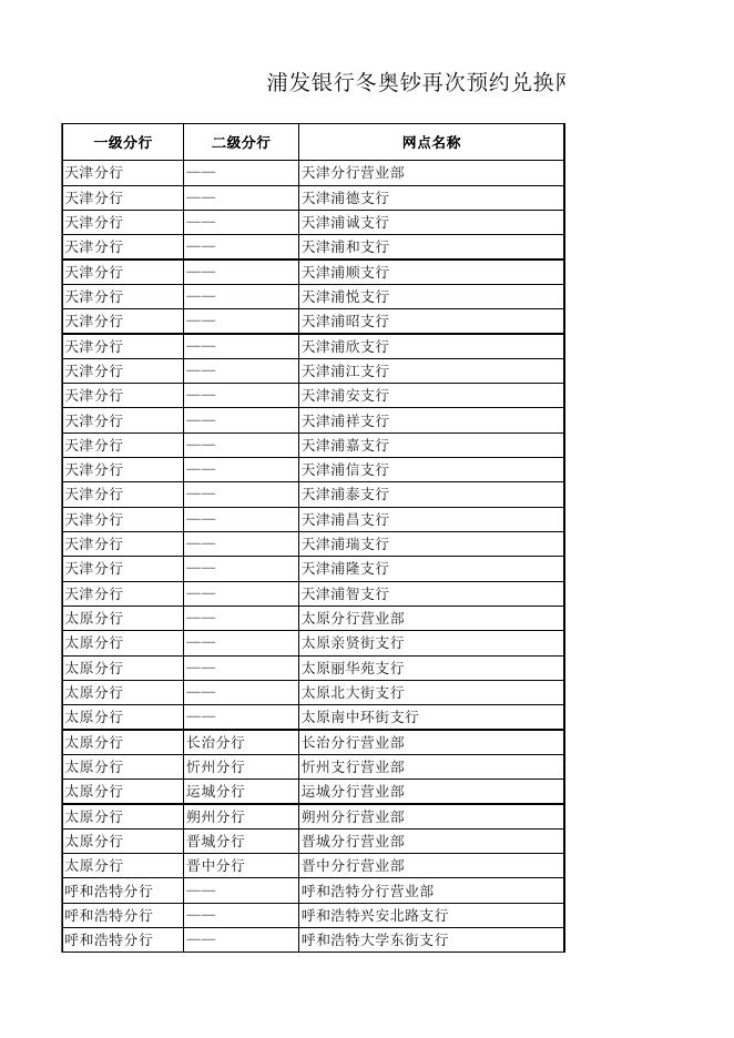 附件2:浦发银行冬奥钞再次预约兑换网点及数量信息.xls