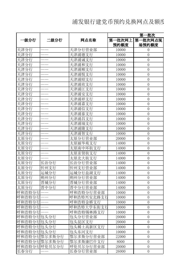 附件:浦发银行建党币预约兑换网点及数量信息.xls