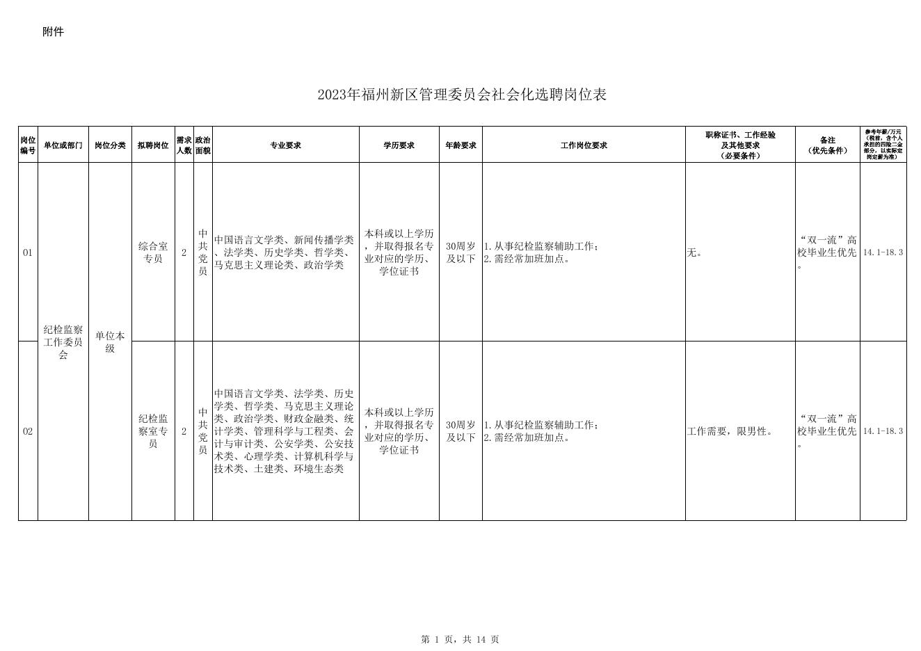 2023年福州新区管理委员会社会化选聘岗位表.xls