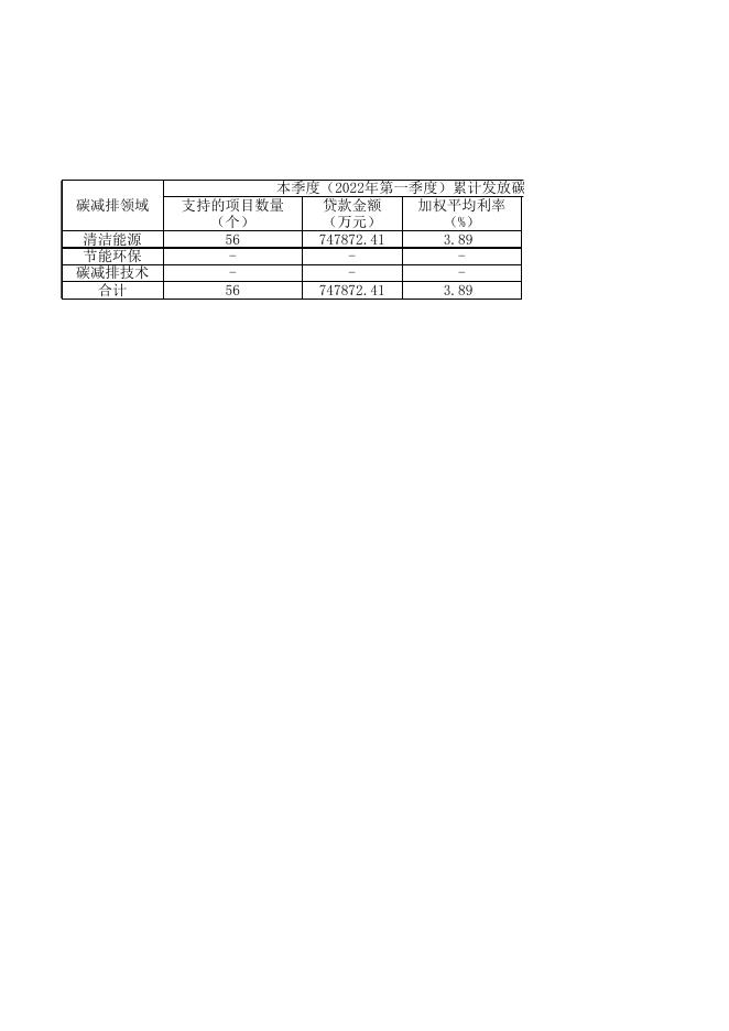 附件1:浦发银行碳减排贷款信息披露表(2022年第一季度).xlsx