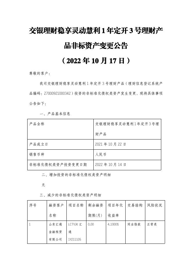交银理财稳享灵动慧利1年定开3号理财产品非标资产变更公告(2022年10月17日).pdf