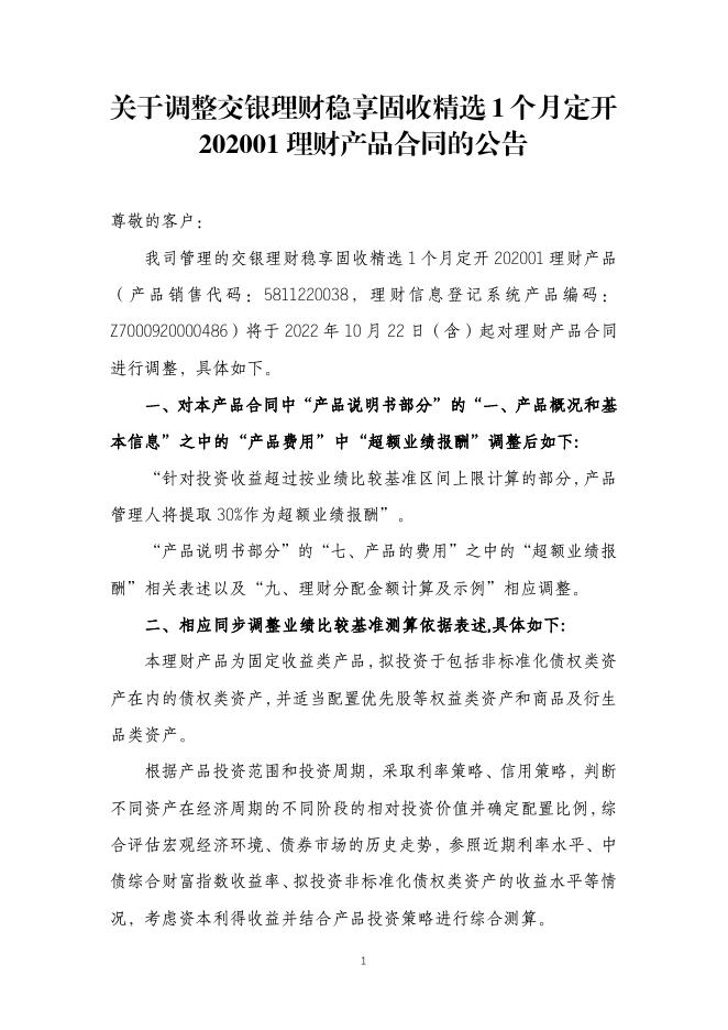 关于调整交银理财稳享固收精选1个月定开202001理财产品合同的公告(2022年10月17日) (1).pdf