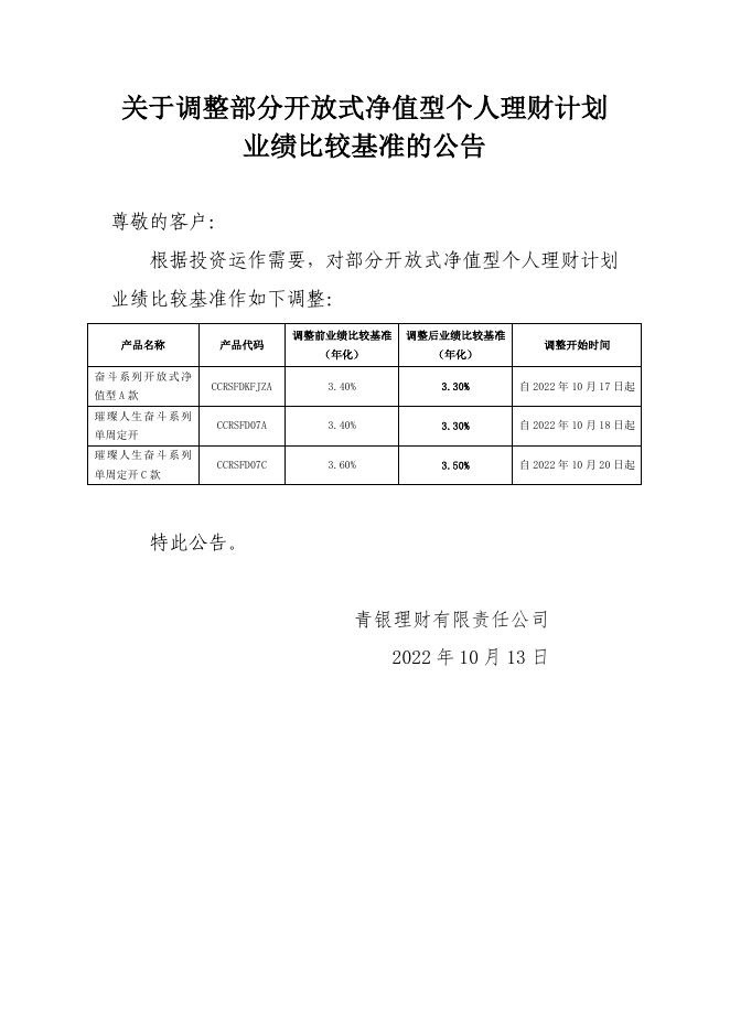 关于调整部分开放式净值型人民币个人理财计划业绩基准的公告20221013.pdf