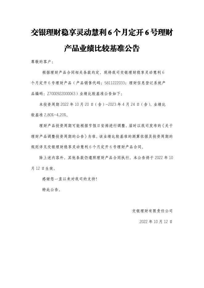 交银理财稳享灵动慧利6个月定开6号理财产品业绩比较基准公告(2022年10月12日).pdf