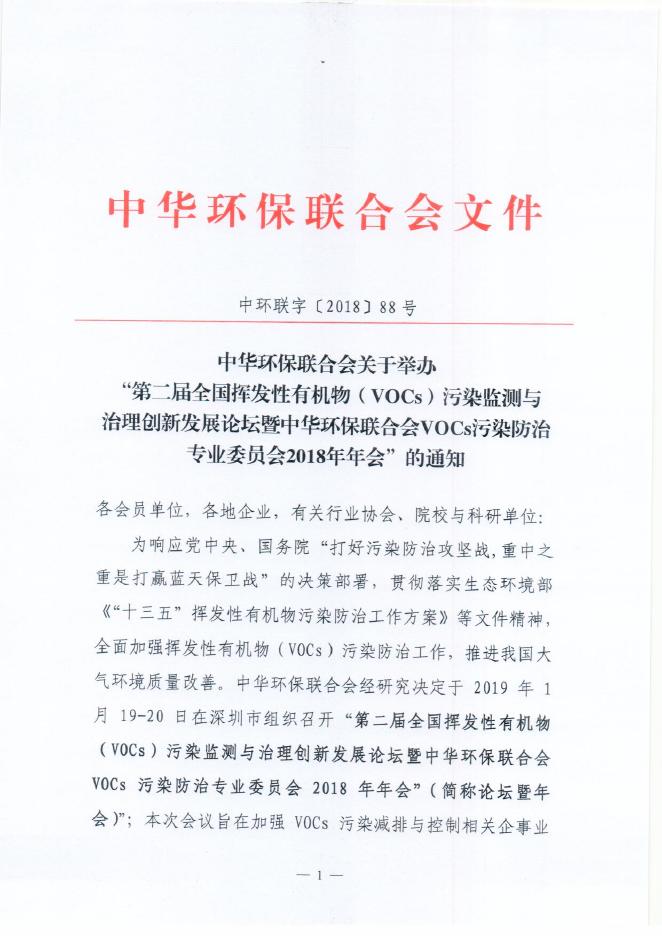 关于举办“中华环保联合会VOCs污染防治专业委员会2018年年会”的通知 - 中华环保联合会VOCs污染防治专业委员会.pdf