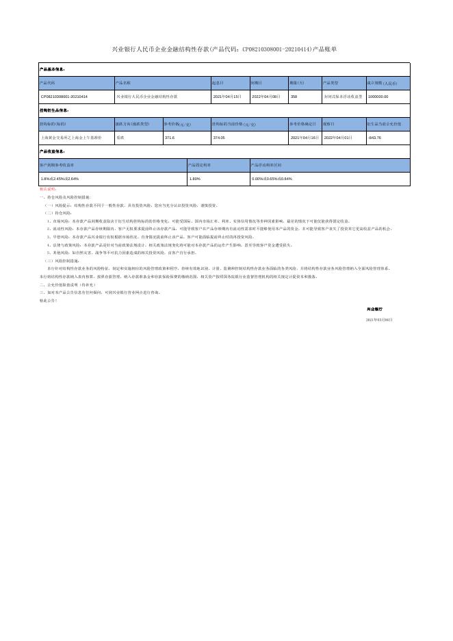 兴业银行人民币企业金融结构性存款(产品代码:CP08210308001-20210401)pdf